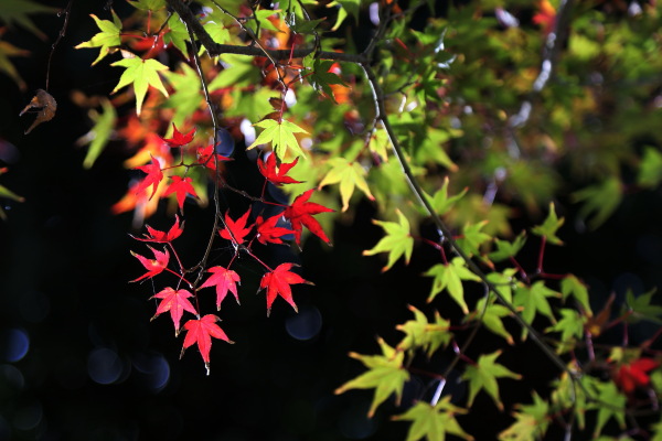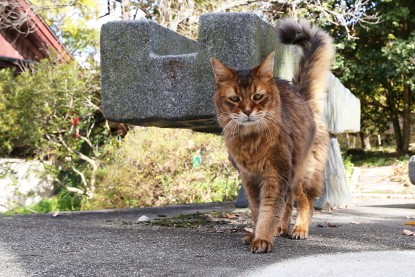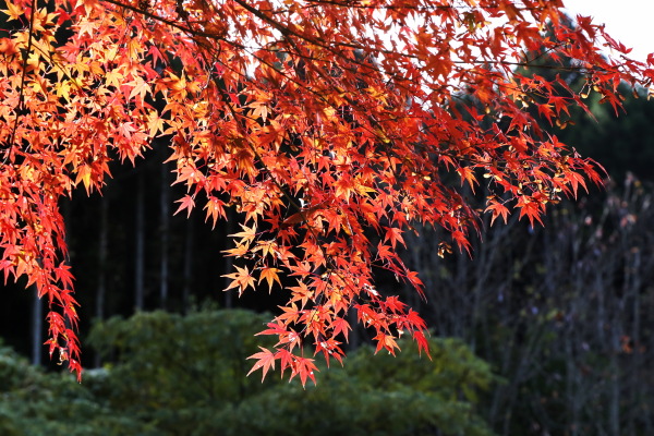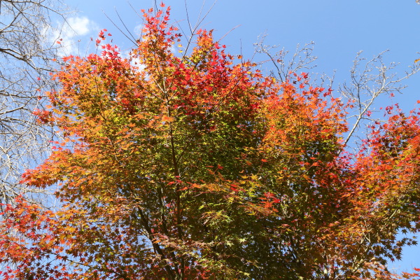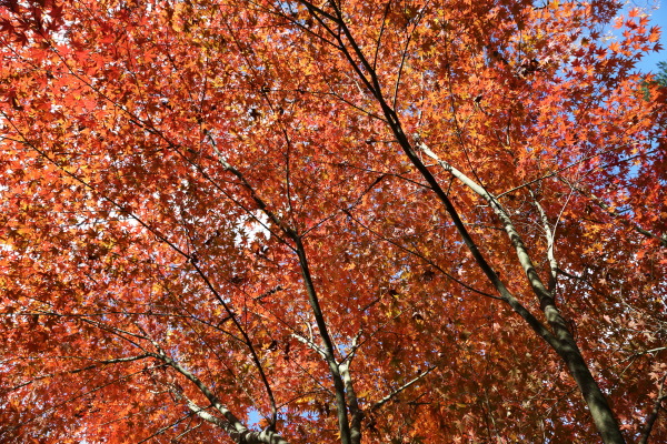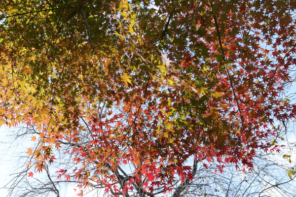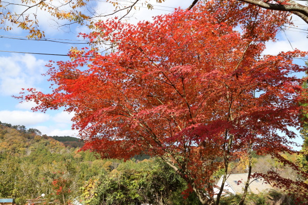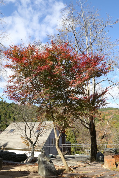 2025年11月22日 撮影 ミチガーデンが秋色に染まりました。 朝の日差しは赤色をさらに鮮やかなに染めています。 *飼い猫の「アビヤン」 本名:モハメド・アビ(略称:アビヤン、アビンチョ、ビンチョ)と呼んでます。
